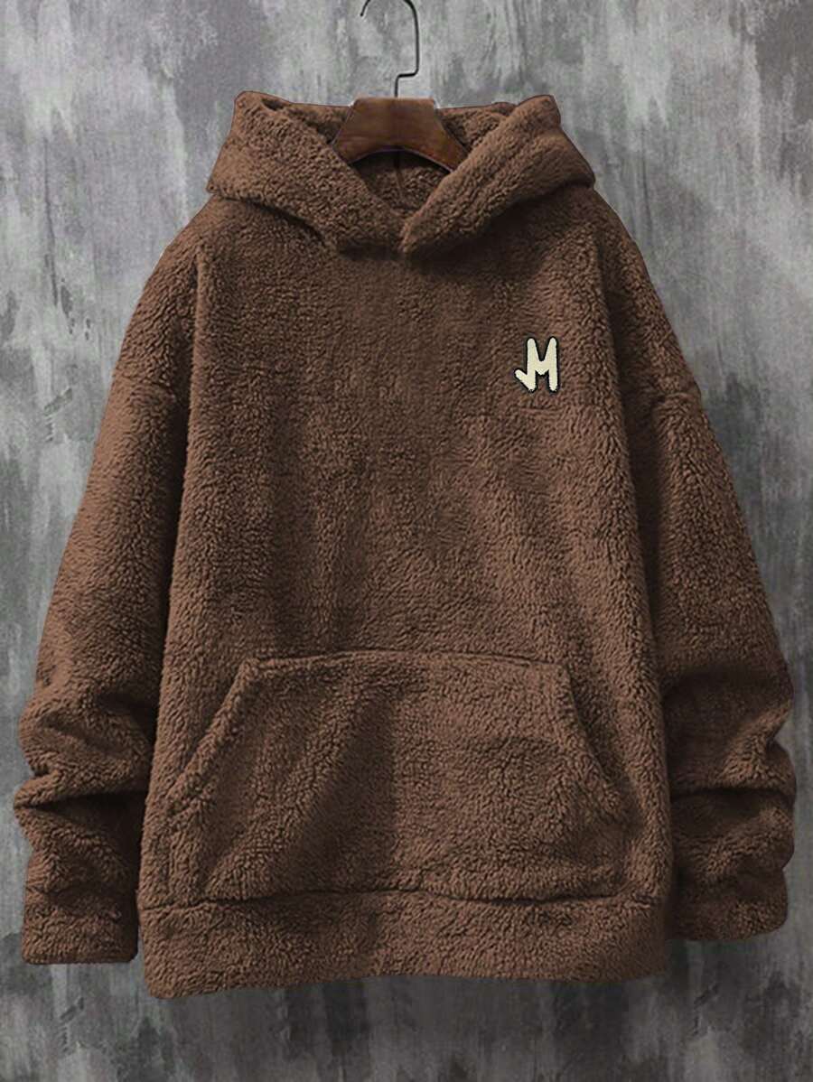 Ruben est un hoodie grande taille en polaire Sherpa, à imprimé lettrage tendance.