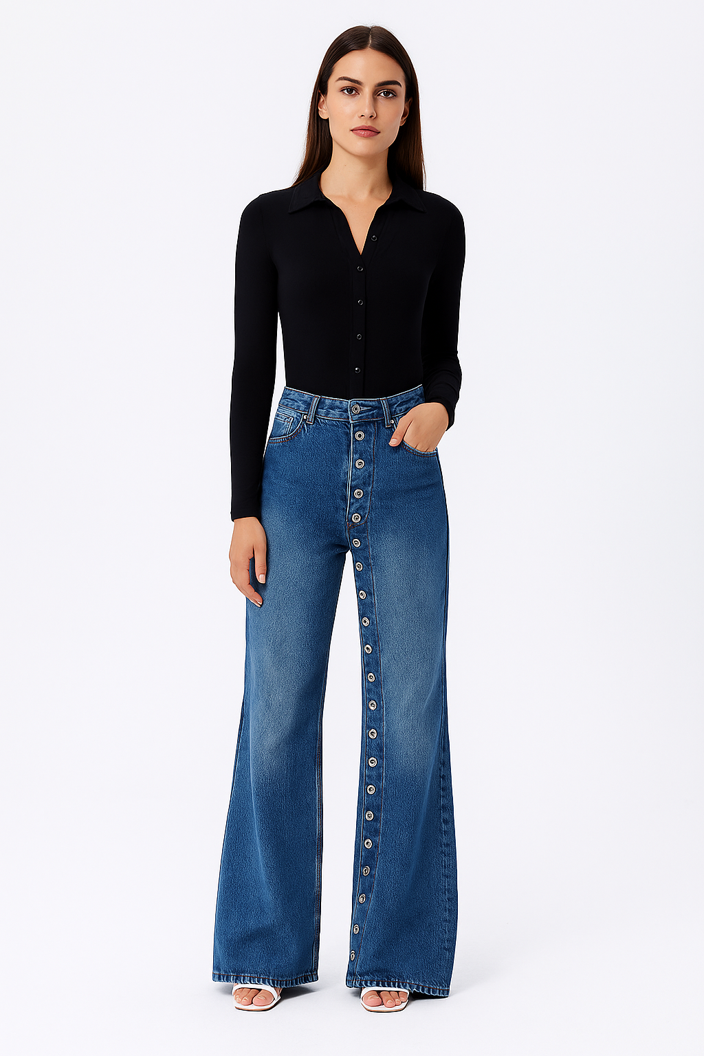 Jean taille haute à boutons – Élégance et silhouette allongée