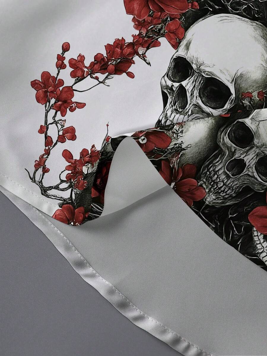 Heren klassiek retro casual overhemd met lange mouwen, kerst- en Halloween-overhemd met schedel en rozenprint, geschikt voor lente-/herfstvakantie-outfits