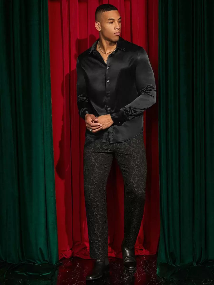 Manfinity BRENVOR Heren effen satijnen overhemd met knoopsluiting, her – Tout Pour Vous