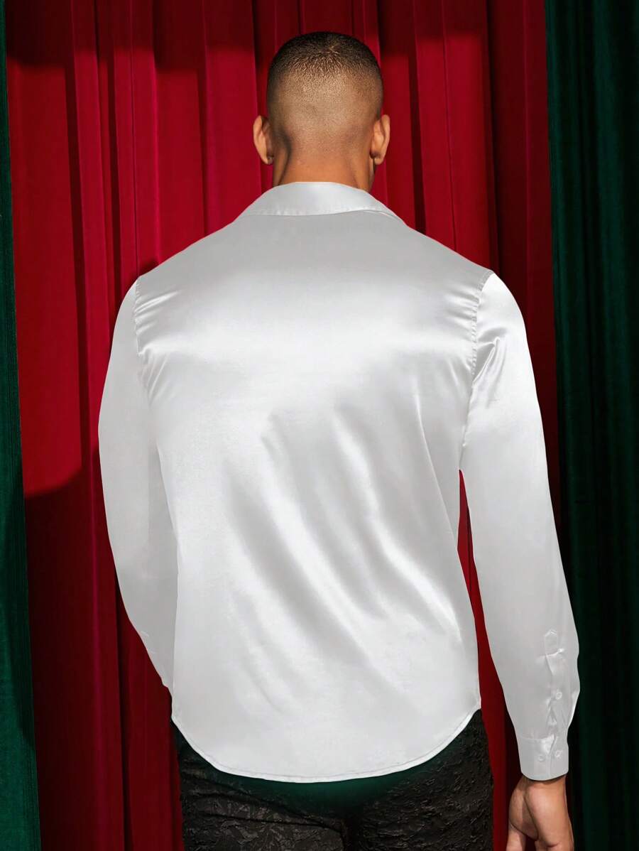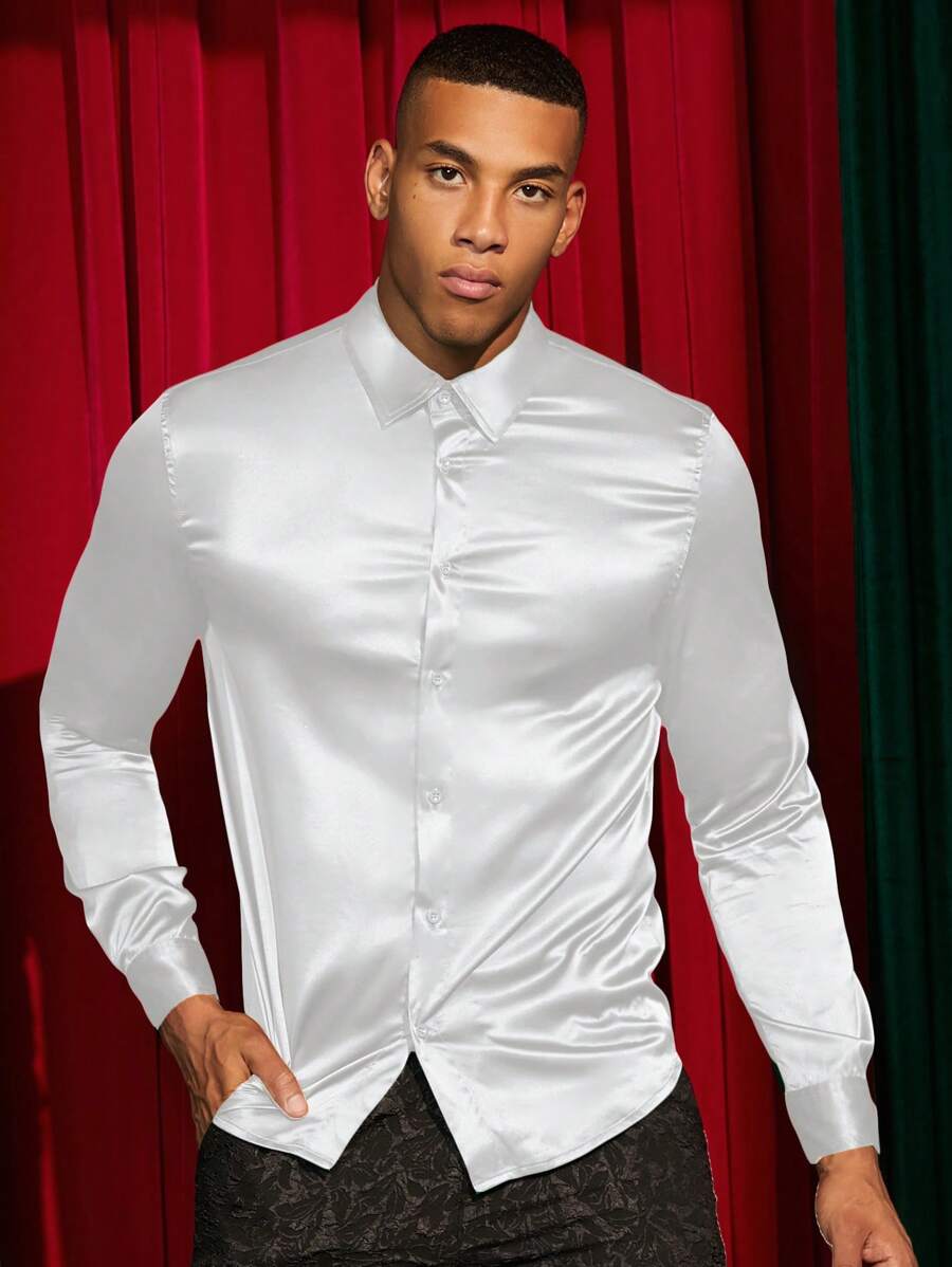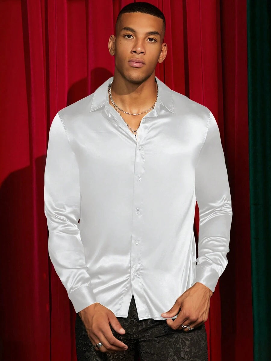 Manfinity BRENVOR Heren effen satijnen overhemd met knoopsluiting, herfst